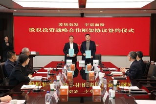 12月26日,苏垦农发与宇宸面粉股权投资战略合作框架协议签约仪式在南京举行。集团公司总经济师、苏垦农发党委书记、董事长朱亚东和宇宸面粉董事长陆飞分别进行致辞。集团公司党委委员、苏垦农发总裁丁涛主持签约仪式。 朱亚东对宇宸面粉股东代表的到来表示热烈欢迎。他指出,宇宸面粉深耕专用面粉领域,经营团队精益求精,能够在毛利率低、开工率低的大环境中实现稳健发展,值得敬佩。苏垦农发全产业链一体化经营、全农服务、全程质量管控的“三全模式”与宇宸面粉高度契合、优势互补,通过本次合作可以补齐面粉产业链,为未来进一步延链补链奠定基础。他强调,收购宇宸面粉是苏垦农发贯彻落实江苏农垦集团“一核双擎”战略部署,得到集团公司主要领导关心与支持,是双方基于战略互补、产业协同、共同发展的深度考量。期待双方共同围绕战略目标,打造面粉产业高质量发展的典范。 陆飞向苏垦农发对宇宸面粉的肯定及信任表示感谢。他指出,江苏农垦有悠久历史和优良传统,苏垦农发是农业行业优秀上市公司,宇宸面粉对合作秉持积极拥抱的心态。他强调,经营团队将清晰界定身份角色,完成从股东、董事向职业经理人身份的转变,未来与苏垦农发共同锻造团结一致