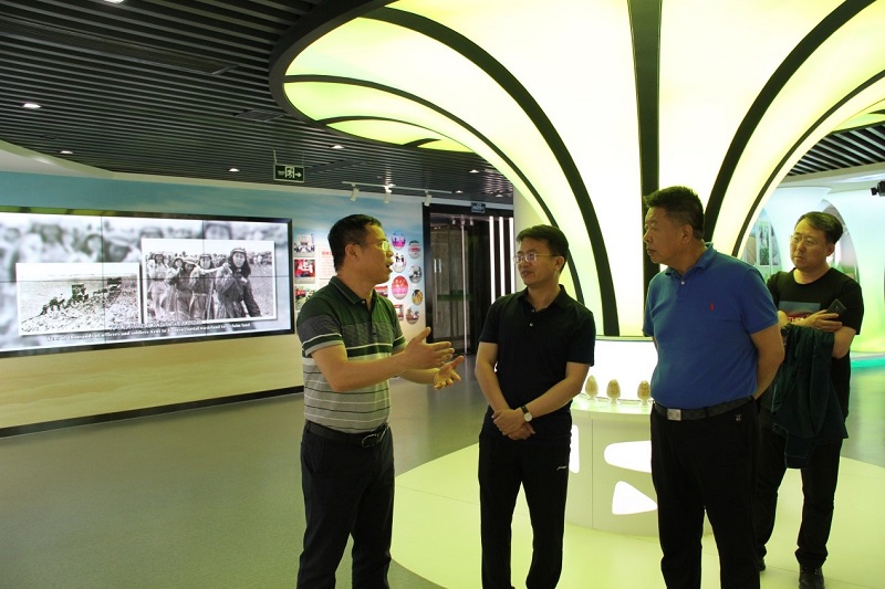 座谈会前,李福罡、常东旭一行到苏垦大厦19楼江苏农垦展示厅参观了解农垦创业发展史和农发主要产品展示。