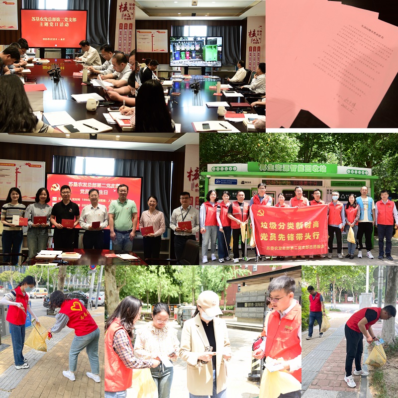 学习贯彻习近平新时代中国特色社会主义思想主题教育开展以来,苏垦农发总部第二党支部自觉对标主题教育总要求和目标任务,以学深悟透、实干笃行、奋勇争先的精神,扎实推进主题教育走深走实。5月25日,在“全国城市生活垃圾分类宣传周”之际,支部组织党员开展“垃圾分类新时尚党员先锋带头行”主题党日活动,引导党员积极作为,展现党员当先锋、做表率的良好风貌。