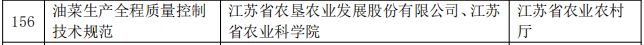 •        近日,江苏省市场监督管理局公布《2023年度立项地方标准项目名单》,苏垦农发2项标准入围名单,分别为《沿海地区大豆-玉米“4:4”带状复合种植“一调二优三控”技术规程》和《油菜生产全程质量控制技术规范》。据悉,本次立项江苏省地方标准项目共327项,其中农业领域56项,企业作为第一起草单位的种植业领域标准项目仅有3项,我司占其中2项。