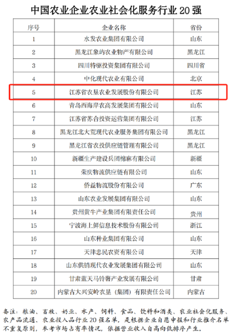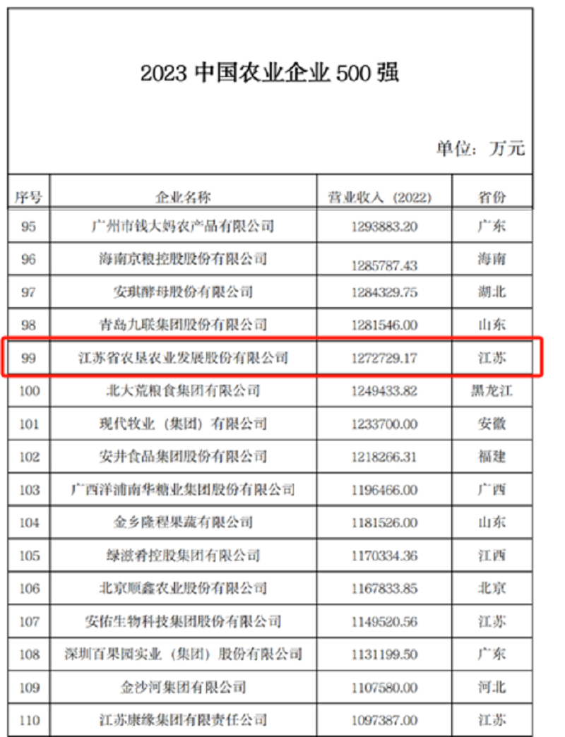 苏垦农发入选2023中国农业企业500强、农业社会化服务行业20强