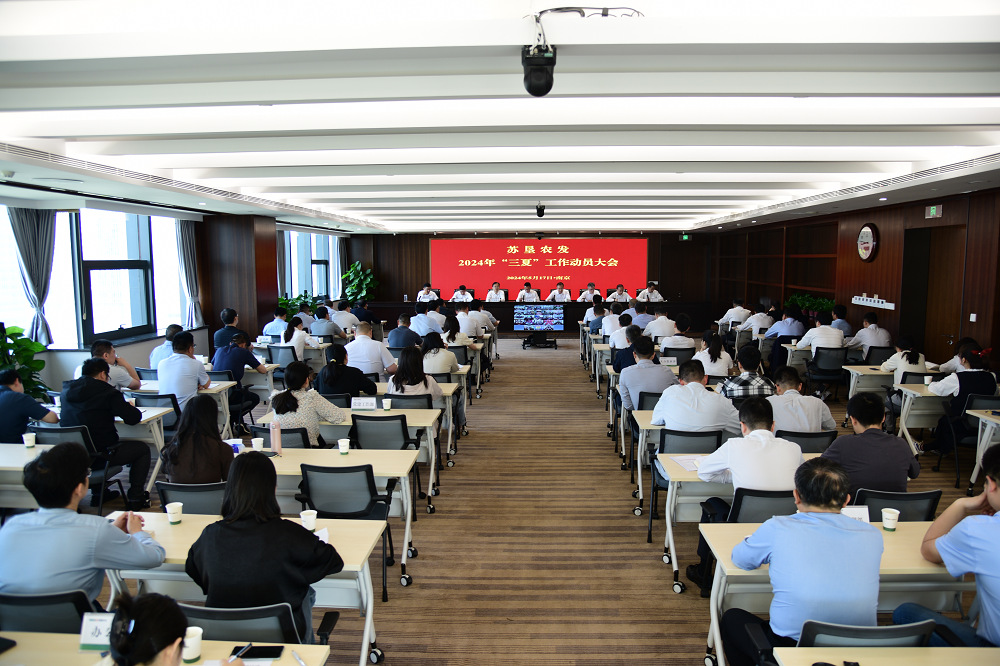 5月17日上午,苏垦农发召开2024年“三夏”工作动员大会。集团公司总经济师、苏垦农发党委书记、董事长朱亚东主持会议并讲话,农垦集团党委委员、苏垦农发总裁丁涛作动员报告。苏垦农发党委委员、副总裁周义东,苏垦农发副总裁徐启来分别就一体化全农服务、“三夏”期间农业生产工作作了具体布置。