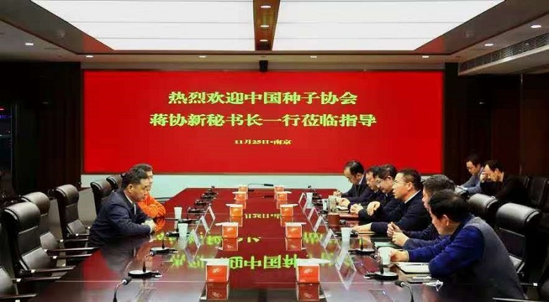 11月25日下午,中国种子协会副会长兼秘书长蒋协新、江苏省种业协会会长张坚勇来大华种业调研指导。苏垦农发总裁朱亚东接待蒋协新、张坚勇一行并与之座谈,苏垦农发副总裁、大华种业党委书记、董事长江玉明以及大华种业领导班子参加调研。朱亚东对国家、省种业协会领导莅临指导表示欢迎,他向蒋协新、张坚勇介绍了苏垦农发农业全产业链发展情况,强调苏垦农发具有集体统筹经营、全产业链一体化、农产品全面质量管理三大全国垦区乃至全国农业界仅有的“独门利器”,为垦区种业发展提供了强大后盾。他指出,苏垦农发将深入贯彻党的十九届五中全会精神,坚决落实国家保障粮食安全、推进农业高质量发展的战略部署,在江苏农垦坚强领导下,横向扩大种植区域规模,纵向延展农业产业链条,纵横一体加快打造现代农业产业航母。他表示,“十四五”时期苏垦农发将一如既往地全面保障大华种业龙头企业高质量发展,加强垦区种子基地建设,大力支持国家、省种业协会工作。他还就有关问题向协会领导作了政策建议。江玉明代表大华种业向蒋协新、张坚勇作了公司发展情况汇报,着重阐述了大华种业所具有的基地支撑强劲有力、研发水平行业领先、生产加工能力强大三大独特优势,期待国家和省种