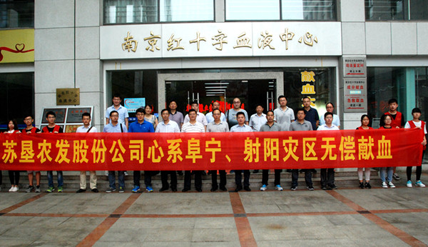 7月11日上午,苏垦农发股份公司组织总部人员到南京红十字会血液中心,为盐城市阜宁、射阳灾区开展无偿