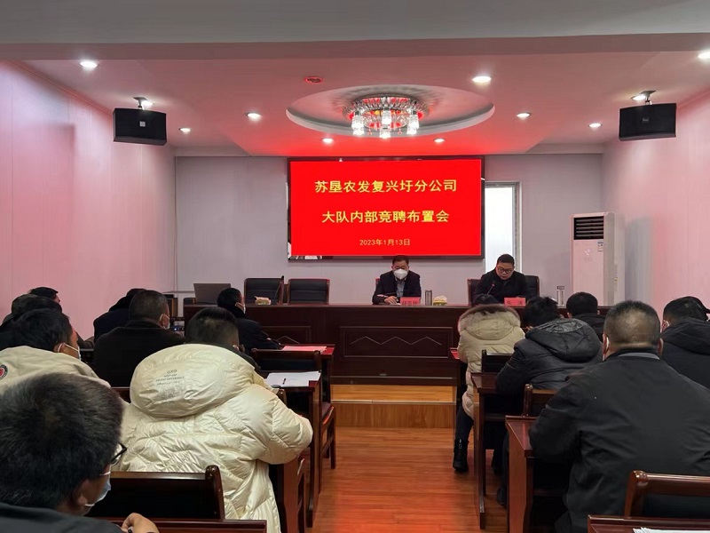 “改革出动力,机制促变化”,为深化三项制度改革,建立健全“能上能下”的选人用人机制,激发干部员工干事创业的热情,1月9至15日,复兴圩分公司在农场公司党委的领导下,有序开展了大队长内部竞聘上岗工作,9名大队长竞聘到岗。本次竞聘由员工自荐报名,通过竞聘演讲与问题答辩等环节全面考察了竞聘人员对农业生产知识、公司规章制度、发展愿景的熟悉程度以及安全生产技能、遇事处理应变能力等。分公司总经理薛亚林在竞聘会上强调,大队长内部竞聘是深化分公司干部人事制度改革、加强干部人才队伍建设的一项重要举措,2023年复兴圩分公司将尊重历史、着眼现实、守正创新、踔厉前行,坚定“做了就要做到位”的思想理念,践行“带着别人干,做给别人看”的务实精神,把政治合格、业绩突出、群众认可作为首要标准,推动人员合理流动、高效配置,增强管理人员能上能下、能进能出意识,形成上下一心、团结协作的工作合力,奋力谱写分公司高质量发展的新篇章。分公司副总经理、工会主席朱涛主持竞聘会并对竞聘上岗的大队长提出要求:一要提高“政治三力”。要切实增强大局意识、责任意识和纪律意识,始终保持坚定的政治立场和正确的政治方向,坚决贯彻落实农发公司党委和
